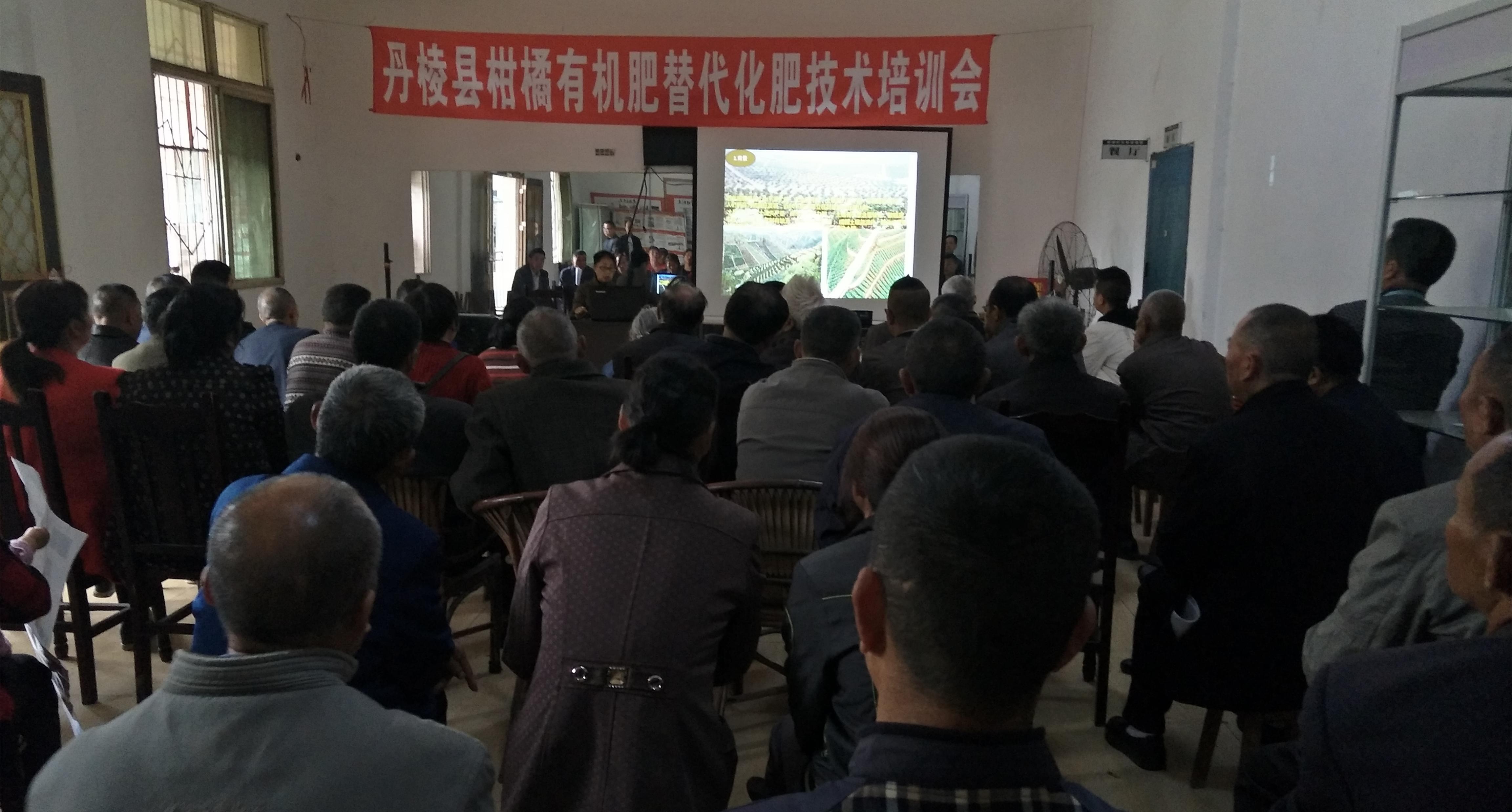 为持续推进有机肥替代化肥,保护好国家级农产品地理标志示范样板“丹棱橘橙”的区域品牌,在柑橘施肥和病虫防治之际,丹棱县农业局结合柑橘有机肥替代化肥项目,从4月20日起,我局专业人员就“有机肥+配方肥”技术、“果—沼—畜技术”、“水肥一体化+有机肥”技术、秸秆还田(园)技术等柑橘有机肥替代化肥技术在丹棱镇板桥村、红石村、桂花村、龙滩村、兴隆村,双桥镇团林村、石河村、黄金村、梅湾村、宿场村、天宫村等11个村委会向农户展开技术培训。培训会通过农户之间互相交流学习、我局专业人员现场答疑等形式,让农户学习掌握了有机肥替代化肥相关知识,切实感受到了有机肥替代化肥带来的种种好处。此外,我局专业人员还对草生栽培技术、绿色防控技术、生物防治技术、测土配方施肥技术等柑橘绿色种植技术进行了培训,深受广大农户的欢迎。