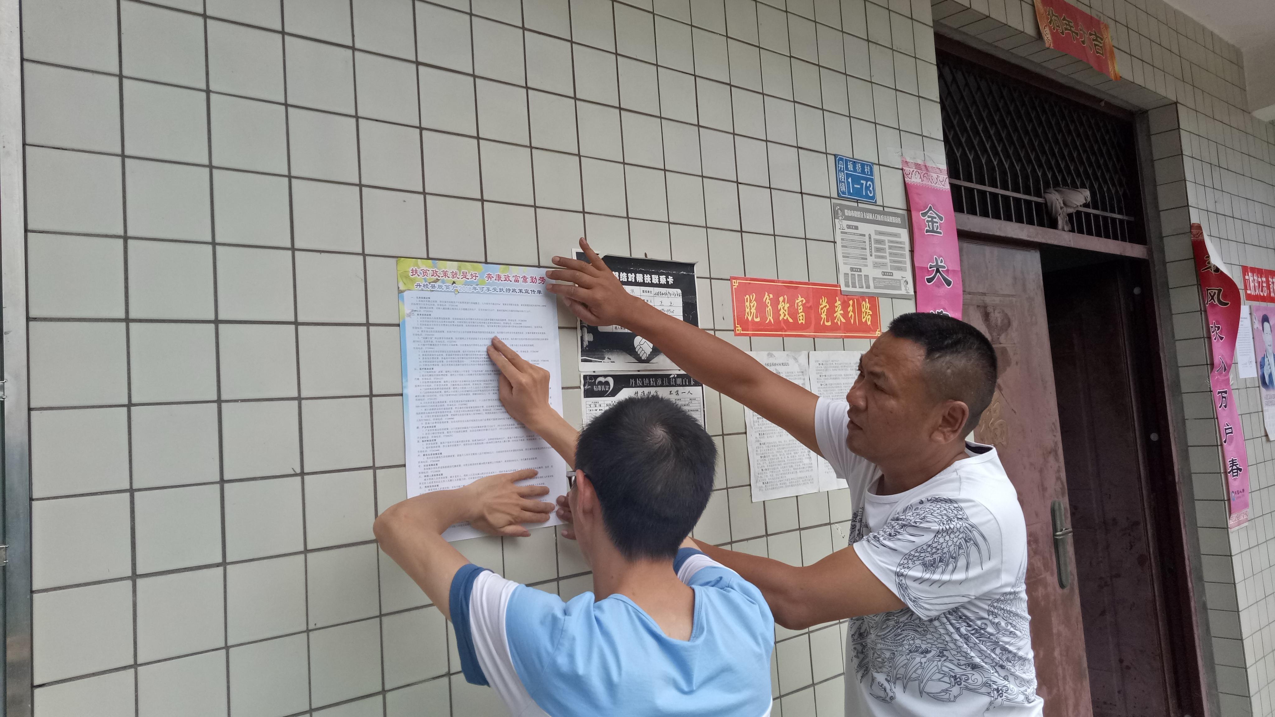 会后,管委会干部与村干部一道对联系户进行了了走访:一是深入了解他们的生产生活和产业发展情况;二是对他们有针对性地宣传了党的十九大和习总书记对四川重要指示精神;三是向贫困户大力宣传了可享受扶贫政策,并在每一户脱贫户家中张贴了《丹棱县脱贫户2018年可享受扶贫政策宣传单》。